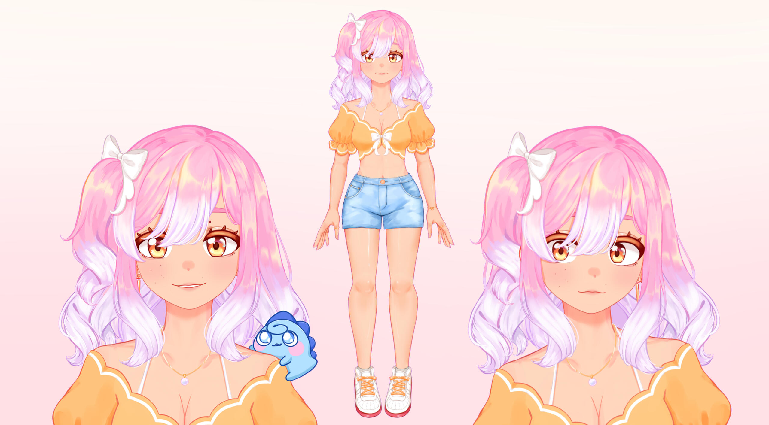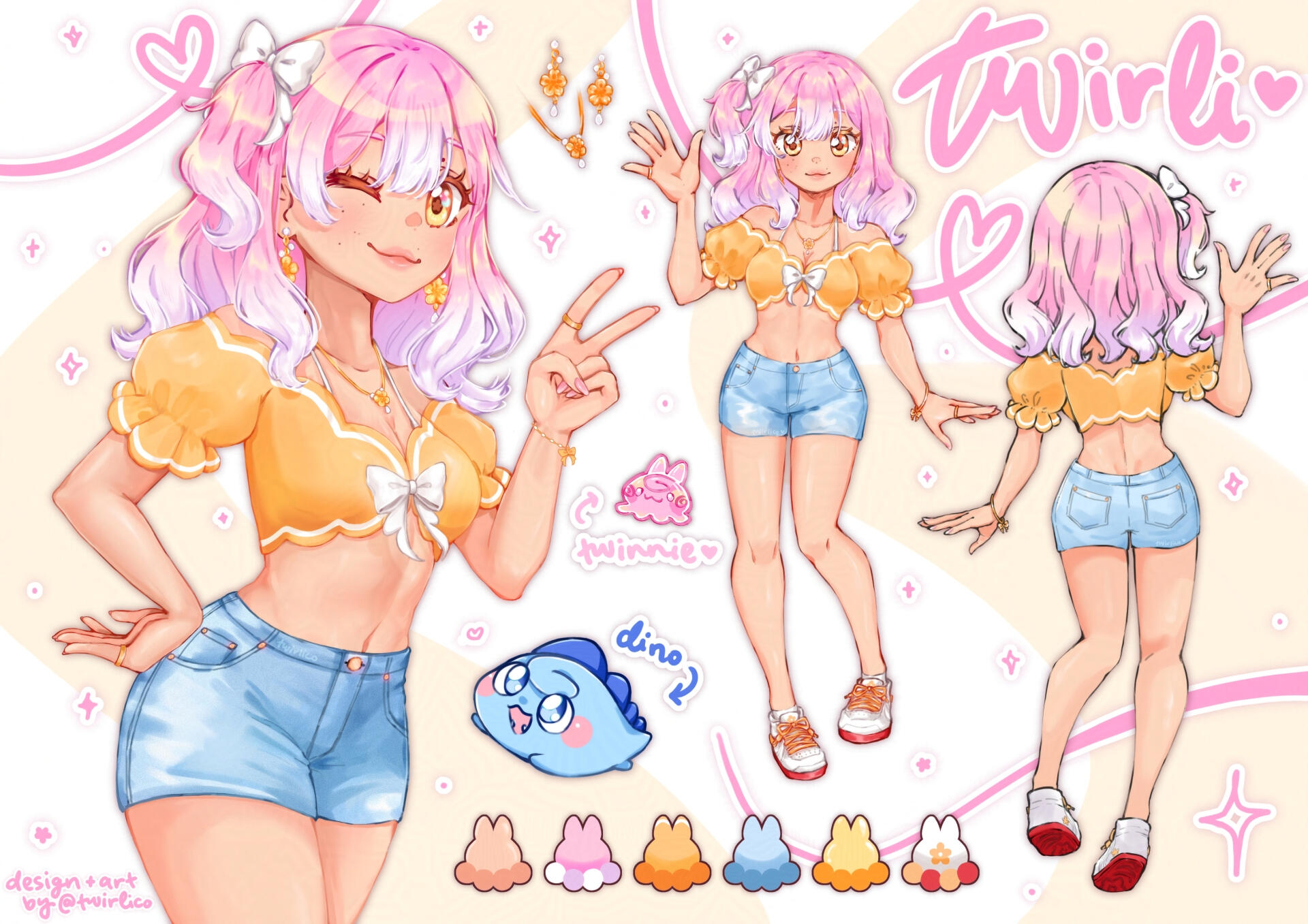 ♡ model rig: nebokeru・ twirli is my persona / original character who represents me online! ever since playing mmo's i've alway gravitated to a pink haired character customoization. i love the beach so her design is fitted to being bright and ready to go to the beach.・ twinnie - my chat mascot & companion!