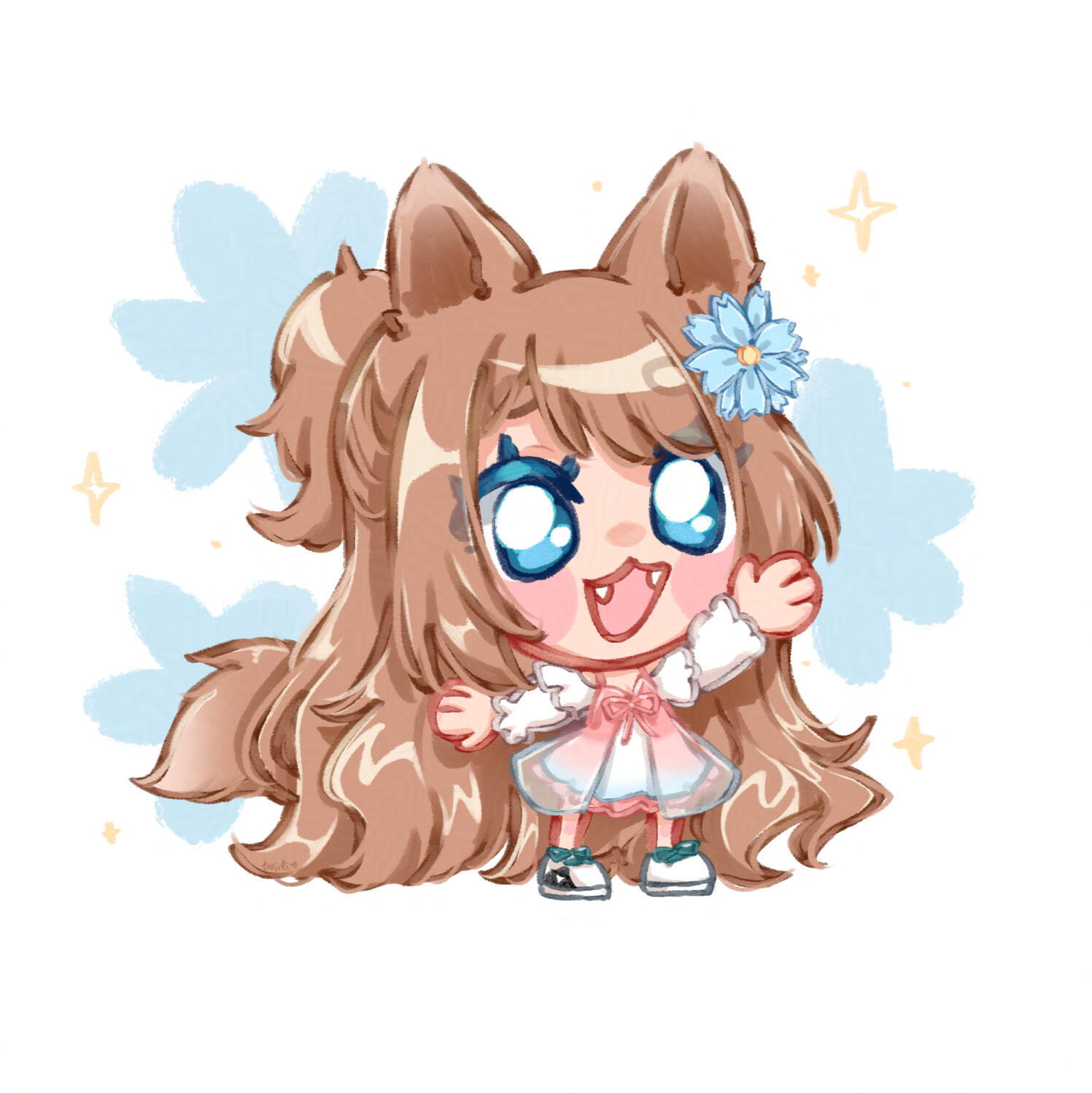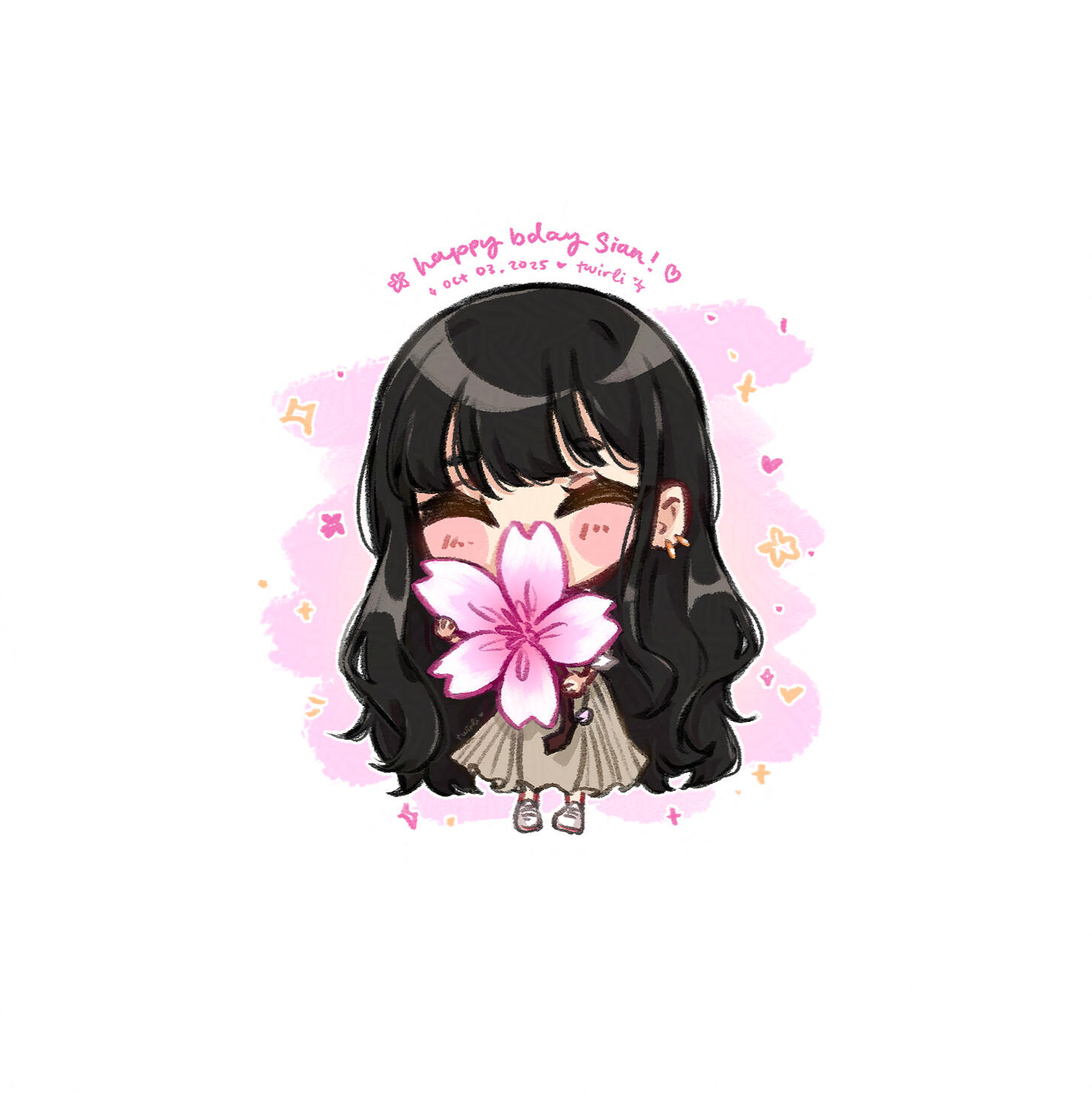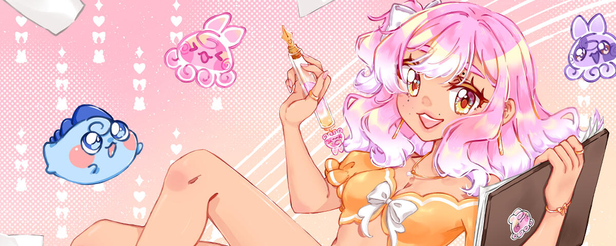i'm a freelance illustrator and streamer based in texas. i draw a lot of anime styled art, chibis and cute things. currently i'm focused on mainly commissions and stickers for my mail club. 💌my streams mainly consists of myself yapping and drawing, usually creating a very cozy, lurk-friendly co-working environment. i've also been playing a variety of games when i'm not creating art. those can include cookie run: kingdom, hollow knight, minecraft, fortnite and more!you can find me live in the cove on twitch.tv/twirl and youtube.com/@twirlico 💐aside from that, i love the beach, journaling, stickers, fountain pens, gel nails, the colors pink and yellow, watching anime, listening to ariana grande and kpop (iu, 2ne1 and more), chocolate filled donuts, succulents, flowers and more! 💖thanks for reading! ٩(ˊᗜˋ*)و ♡